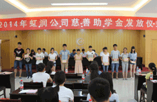 2014年8月22日,虹潤公司一年一度的“圓夢助學(xué)行動(dòng)”捐資助學(xué)儀式在虹潤科技園辦公大樓四樓禮堂隆重舉行。順昌縣委副書記易才卿、順昌縣關(guān)工委主任黃春娣、順昌縣政協(xié)副主席黃為雄、順昌縣文體局局長李元生、團(tuán)縣委書記吳詩源、順昌縣工會(huì)副主席蘭榮妹、虹潤公司董事長林善平以及相關(guān)部門領(lǐng)導(dǎo)出席了儀式。
