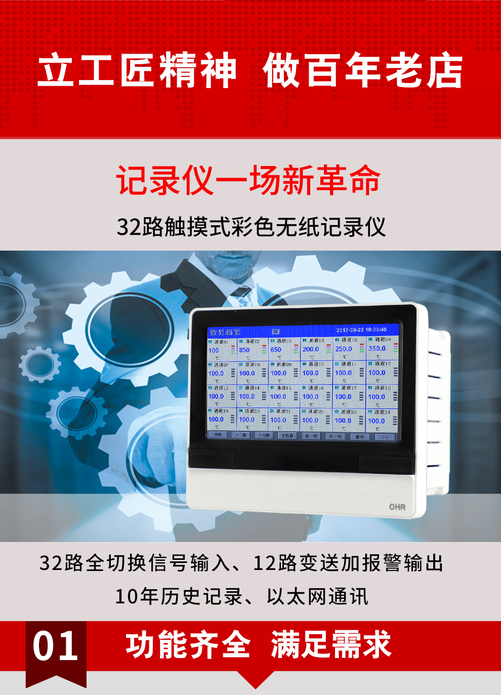 虹潤公司是專業(yè)生產(chǎn)無紙記錄儀的國家專精特新“小巨人”企業(yè)。生產(chǎn)的觸摸式彩色無紙記錄儀,具有32路全切換輸入,通道之間相互隔離,數(shù)據(jù)記錄與轉(zhuǎn)存功能,配套上位機管理軟件,RS485/以太網(wǎng)通訊等特點。產(chǎn)品獲得無紙記錄儀、數(shù)據(jù)采集控制工作站、智能化控制器、巡回檢測顯示方法及裝置等4項國家發(fā)明專利;主持起草物聯(lián)網(wǎng)智能記錄儀表通用技術(shù)條件、物聯(lián)網(wǎng)智能溫度儀表通用技術(shù)條件等2項國家標(biāo)準(zhǔn),通信系統(tǒng)多通道數(shù)據(jù)采集控制終端規(guī)范軍用標(biāo)準(zhǔn),以及空間數(shù)據(jù)與信息數(shù)據(jù)傳輸系統(tǒng)等2項航天標(biāo)準(zhǔn)。參與國際5G標(biāo)準(zhǔn)制定;取得觸摸式彩色無紙記錄儀等4項相關(guān)軟件著作權(quán)。產(chǎn)品廣泛應(yīng)用于石化、冶金、電力、制藥、新能源、農(nóng)業(yè)等諸多領(lǐng)域。