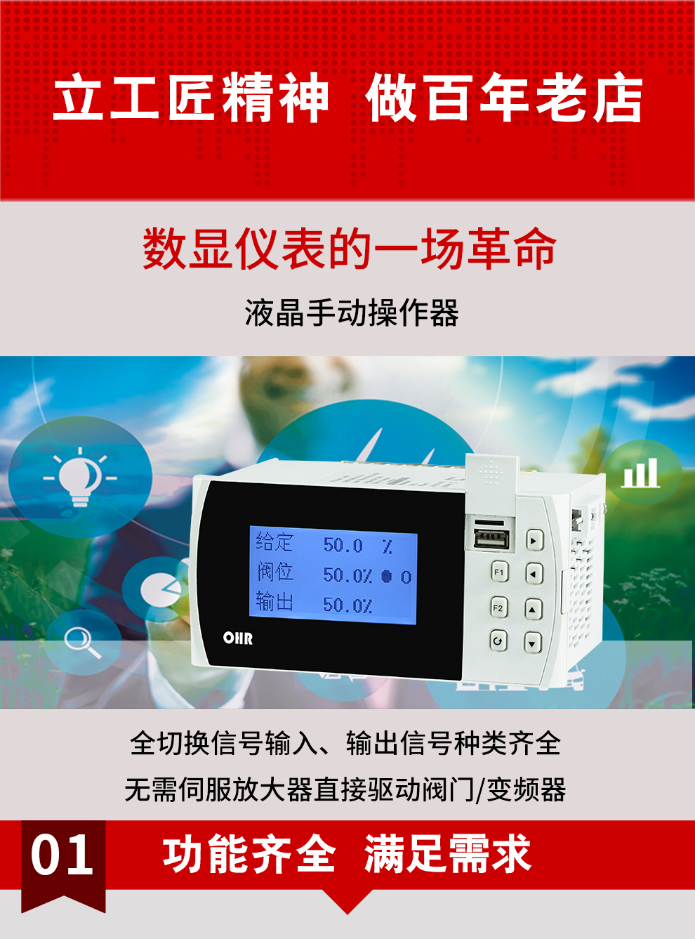 虹潤(rùn)公司是專業(yè)生產(chǎn)智能手操器的國家專精特新“小巨人”企業(yè),生產(chǎn)的液晶手動(dòng)操作器,具有全切換信號(hào)輸入,通道之間相互隔離,手自動(dòng)無擾動(dòng)切換,配上位機(jī)管理軟件等特點(diǎn)。產(chǎn)品獲得閥門自動(dòng)手動(dòng)無擾動(dòng)操作控制方法及裝置、模糊PID控制儀及控制方法、移相觸發(fā)控制器等3項(xiàng)國家標(biāo)準(zhǔn),主持起草工業(yè)過程控制系統(tǒng)用模擬輸入兩位或多位輸出儀表、流程工業(yè)中電氣/儀表和控制系統(tǒng)的試車等2項(xiàng)國家標(biāo)準(zhǔn),以及通信系統(tǒng)多通道數(shù)據(jù)采集控制終端規(guī)范軍用標(biāo)準(zhǔn),參與國際5G標(biāo)準(zhǔn)制定,取得手動(dòng)操作器等3項(xiàng)相關(guān)軟件著作權(quán)。產(chǎn)品廣泛應(yīng)用于電力、石化、冶金、化工、造紙、食品、輕工、制藥、熱處理、水處理、機(jī)械配套等各種工業(yè)現(xiàn)場(chǎng)。