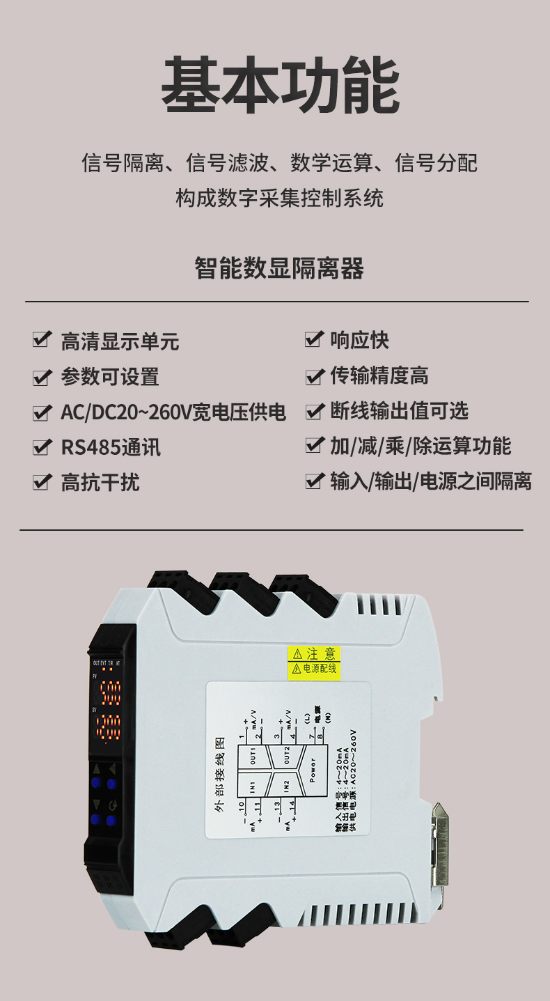 虹潤公司是專業(yè)生產隔離器的國家專精特新“小巨人”企業(yè)。生產的導軌式智能隔離器 ,具有高清顯示單元,參數可設置,寬電源供電,響應快,帶RS485通訊等特點。產品獲得信號隔離器、一種二端子模塊、無源信號隔離器等3項國家發(fā)明專利,主持起草現場設備工具(FDT)接口規(guī)范、工業(yè)過程測量和控制系統(tǒng)用隔離式安全柵、工業(yè)過程測量和控制系統(tǒng)用配電器等3項國家標準,以及通信系統(tǒng)多通道數據采集控制終端規(guī)范軍用標準,參與國際5G標準制定,取得智能隔離器等2項相關軟件著作權。產品廣泛應用于電力、石化,冶金、制藥、水處理、機械配套等各種工業(yè)現場。