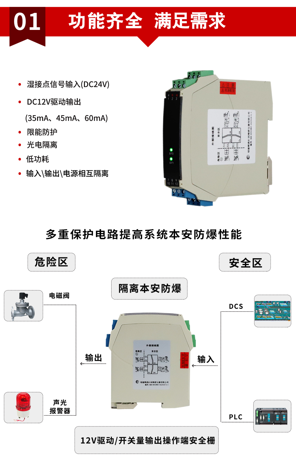 虹潤(rùn)公司是專業(yè)生產(chǎn)隔離器的國(guó)家專精特新“小巨人”企業(yè)。生產(chǎn)的隔離式操作端安全柵涵蓋信號(hào)電壓輸入、電流輸入、開關(guān)量輸入等多種產(chǎn)品類型。產(chǎn)品獲得具備減震抗干擾能力的溫度變送器、信號(hào)隔離器、一種二端子模塊、無(wú)源信號(hào)隔離器等4項(xiàng)國(guó)家發(fā)明專利,主持起草物聯(lián)網(wǎng)智能溫度儀表、現(xiàn)場(chǎng)設(shè)備工具(FDT)接口規(guī)范、工業(yè)過(guò)程測(cè)量和控制系統(tǒng)用溫度變送器等3項(xiàng)國(guó)家標(biāo)準(zhǔn),以及通信系統(tǒng)多通道數(shù)據(jù)采集控制終端規(guī)范軍用標(biāo)準(zhǔn)。參與國(guó)際5G標(biāo)準(zhǔn)制定,取得智能隔離式安全柵等4項(xiàng)相關(guān)軟件著作權(quán)。產(chǎn)品廣泛應(yīng)用于石油、電力、化工,冶金、智能制造、污水處理等諸多行業(yè)。
