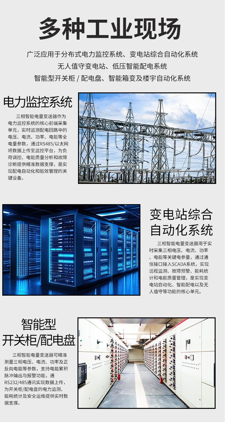 虹潤(rùn)公司是專業(yè)生產(chǎn)電流傳感器的國(guó)家專精特新“小巨人”企業(yè)。生產(chǎn)的三相智能電量變送器,具有多種電參數(shù)測(cè)量,正反向電能累積,多種輸出信號(hào),導(dǎo)軌壁掛共用, RS485/RS232通訊等特點(diǎn)。產(chǎn)品獲得基于一種交流信號(hào)變送器、交直流信號(hào)轉(zhuǎn)換電路、基于DCS技術(shù)的盤裝式三相電量表等3項(xiàng)國(guó)家發(fā)明專利,主持起草工業(yè)過(guò)程控制系統(tǒng)用模擬輸入兩位或多位輸出儀表國(guó)家標(biāo)準(zhǔn),直流漏電流傳感器規(guī)范、通信系統(tǒng)多通道數(shù)據(jù)采集控制終端規(guī)范等2項(xiàng)軍用標(biāo)準(zhǔn),以及現(xiàn)場(chǎng)設(shè)備集成等5項(xiàng)智能制造國(guó)家標(biāo)準(zhǔn),參與國(guó)際5G標(biāo)準(zhǔn)制定,取得液晶綜合電量集中顯示儀等2項(xiàng)相關(guān)軟件著作權(quán)。產(chǎn)品廣泛應(yīng)用于電力、冶金、化工、水泥、造紙、新能源、基礎(chǔ)設(shè)施等用電密集行業(yè)。