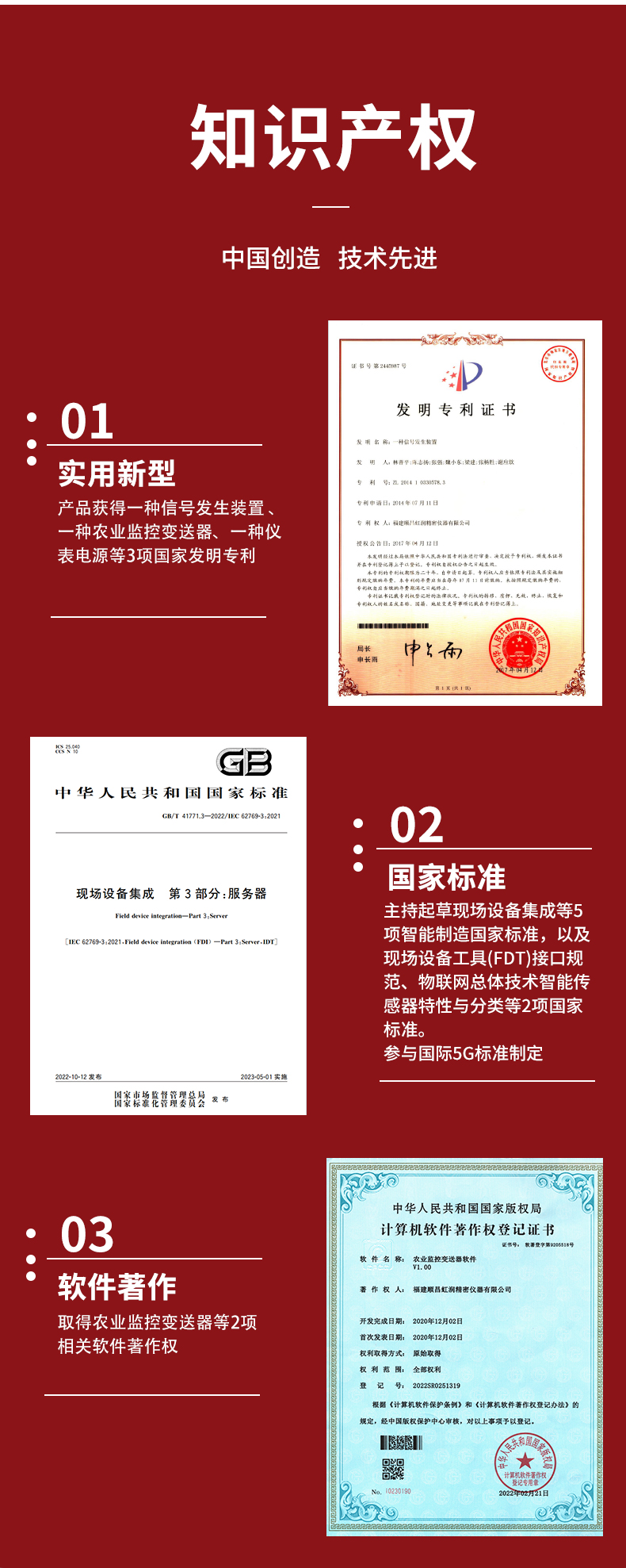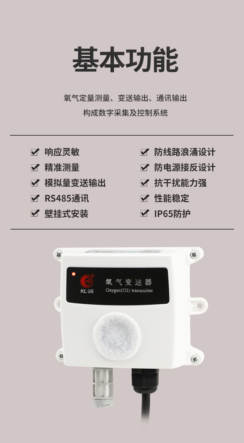 虹潤公司是專業(yè)生產(chǎn)環(huán)境監(jiān)測(cè)儀表的國家專精特新“小巨人”企業(yè)。生產(chǎn)的氧氣變送器,具有采用電化學(xué)原理,響應(yīng)靈敏,準(zhǔn)確度高,低功耗,模擬量變送輸出或RS485通訊等特點(diǎn)。產(chǎn)品獲得一種農(nóng)業(yè)監(jiān)控變送器、一種儀表電源等2項(xiàng)實(shí)用新型專利,主持起草現(xiàn)場設(shè)備集成等5項(xiàng)智能制造國家標(biāo)準(zhǔn),以及現(xiàn)場設(shè)備工具(FDT)接口規(guī)范、物聯(lián)網(wǎng)總體技術(shù)智能傳感器特性與分類等2項(xiàng)國家標(biāo)準(zhǔn),參與國際5G標(biāo)準(zhǔn)制定,取得農(nóng)業(yè)監(jiān)控變送器等3項(xiàng)相關(guān)軟件著作權(quán)。產(chǎn)品廣泛應(yīng)用于機(jī)房、配電站、地下車庫、工廠倉庫、食品儲(chǔ)存、養(yǎng)殖場、果蔬林園等環(huán)境場合對(duì)氧氣濃度的檢測(cè)。