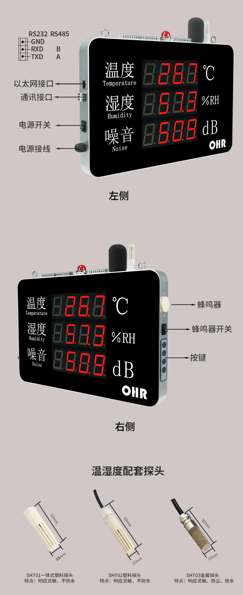 OHR-WS55系列大屏噪音溫濕度記錄儀